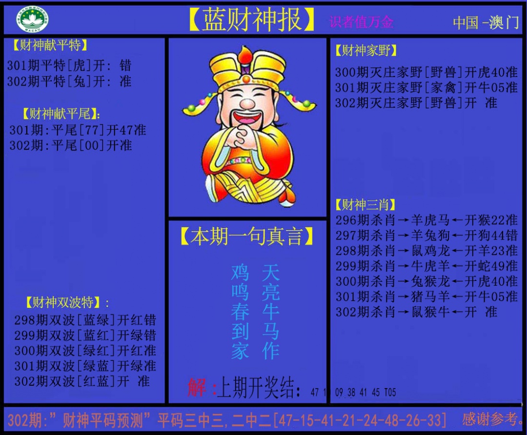 303期必中二肖:龙蛇 303期必中③码:02.38.13